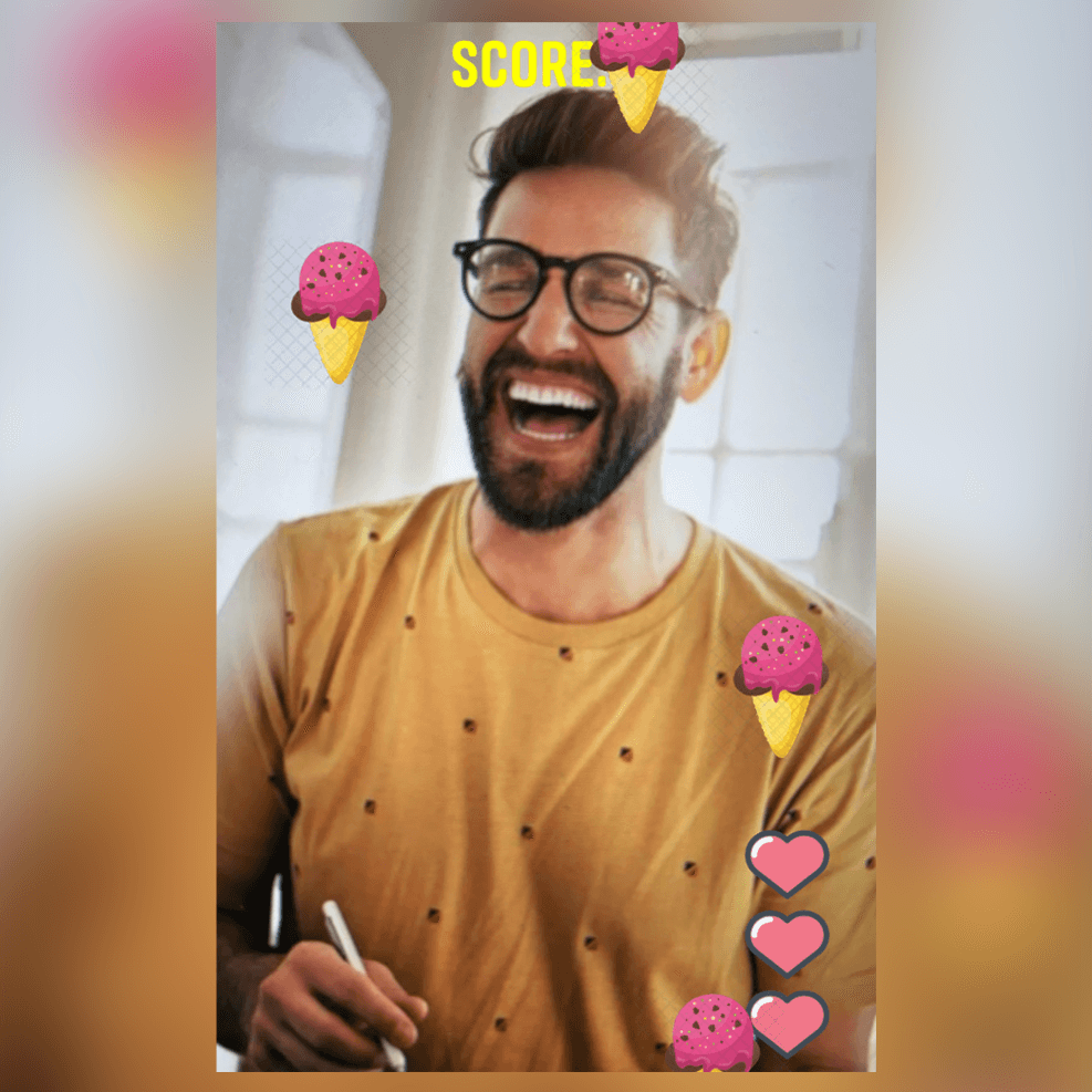 Ice Cream gameWe made an Instagram filter – a game during which player has to catch 2D objects falling down.